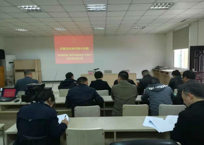 为纪念中国共产党成立100周年,扎实推进一建公司党史学习教育,4月12日下午,公司党委组织领导班子成员、中层干部30余人在一楼会议室采取书面答题的方式开展了“党史知识百题竞答”活动。